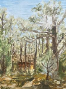 Sukkot: Cabin in the Pines 1. Oil on Panel. 6×8 in. 2025. Bjorn Bengtsson